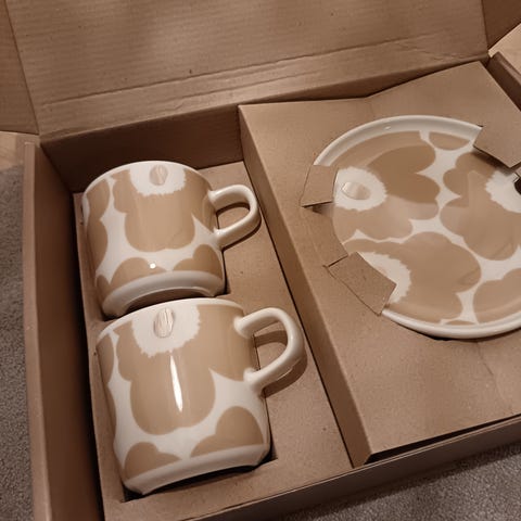 Uusi Marimekon kahvikuppi ja aluslautanen