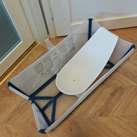 Kylpyamme ja kylpytuki vauvalle. Ostettu täältä ja meillä käytössä yhdellä.