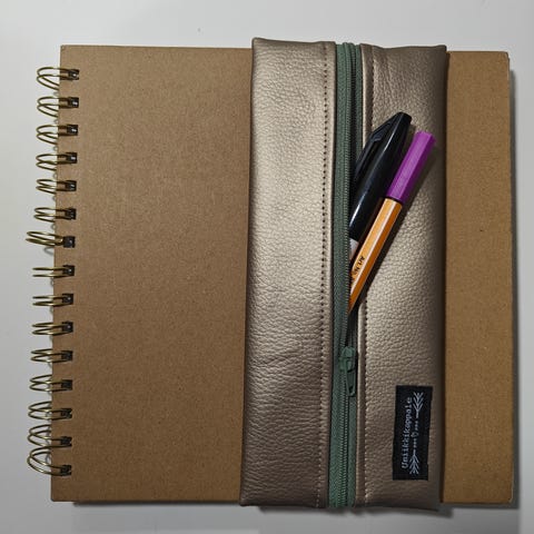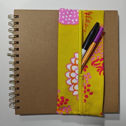 Uusi penaali, jonka voi kiinnittää kuminauhalla kalenterin / muistikirjan kanteen tai käyttää ilman kanteen kiinnittämistä. Sopivin A5 koon kalenterille / muistikirjalle. Materiaali paksuhko "laminoitu" markiisi. Leveys noin 7cm, korkeus noin 20-21cm.