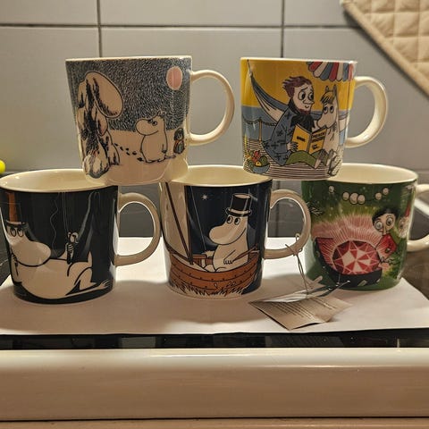 Myydään yhdessä pakettina. Kaikki mukit todella hyvässä kunnossa.