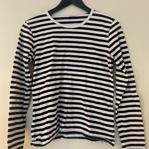 Myyntiin hyväkuntoinen Marimekon tasaraitapaita. Koko L. Väri musta/valkoinen.