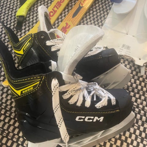 CCM AS 550 jääkiekko luistimet lasten koko 35. Luistimissa musta väri ja valkoiset nauhat. Soveltuvat jääkiekkokäyttöön.