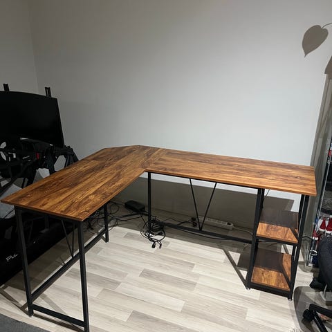 Myynnissä Ikea Bekant -kulmapöytä. Pöytä on kooltaan 160 cm x 60-110 cm. Pöytä on maalattu noin 5 vuotta sitten mustaksi, mutta on alunperin ollut harmaan värinen. Käytössä ei ollut mitään ongelmaa, mutta joutuu nyt väistämään sähköpöydän tieltä.