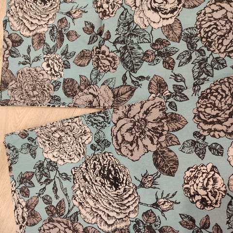 Kelta pohjaset paneli verhot, mustia ja valkosia oksia, kork. 184 , lev. 70. Halkaistu leveämmästä. Hinta yht. 3 e.