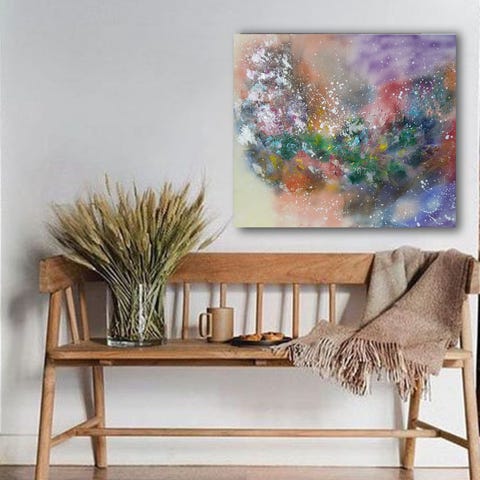 Taideteos on abstrakti ja sen värit ovat kauniit ja intensiiviset.
