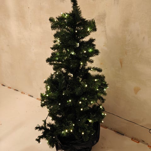 Tekokuusi valoilla, valoissa pitkä johto. Oksia pystyy taivuttelemaan, tukeva jalka. Ollut kaksi joulua käytössä, ei mitään moitetta kunnossa. Korkeutta n. 175cm, menee kolmeen osaan ja alkuperäinen säilytyslaatikko tallella johon mahtuu säilytykseen.