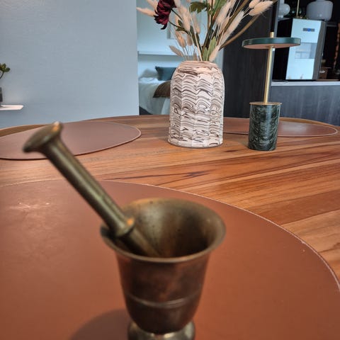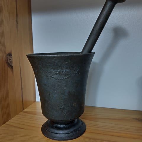Messinkiset painavat morttelit. Takimmaisten korkeudet 9cm ja 8cm. Hinta 20€/kpl.