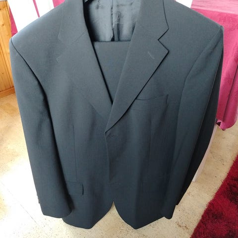 Myydään miesten musta puku. Mitat: