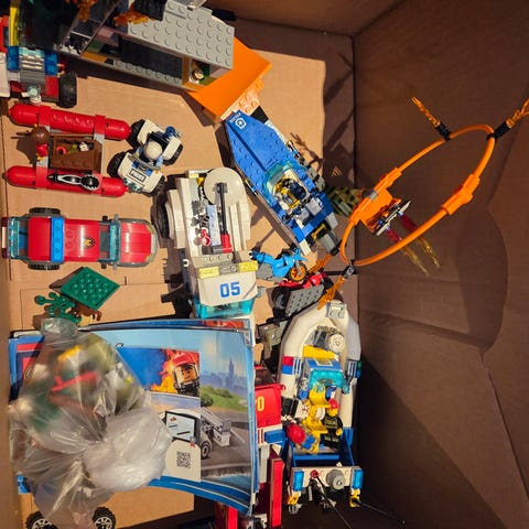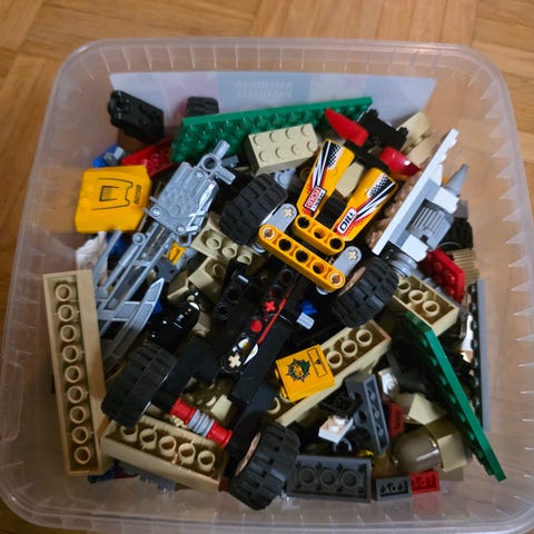 Sekalainen setti vanhaa ja tuorempaa LEGOa. Laatikko suunnilleen täynnä jo, mutta koitan vielä lisätä vähän sekalaisia osia täyttämään raot.