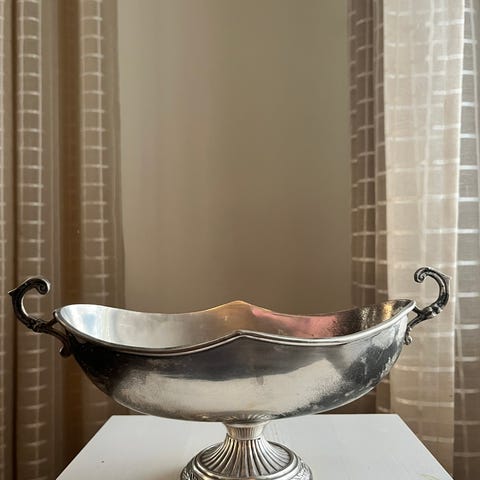 Myydään kannellinen tina-astia, alkuperästä ei tietoa. Kunto hyvä.