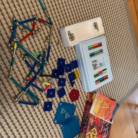 Kaksi Geomag pakettia: Colors ja Panels lasten lelu rakennussarja sisältää värikkäitä magneettisia palikoita ja palloja. Noin 300 palaa.
