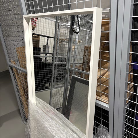 peili musta, jossa ruudukkomallinen kehys. Sopii seinäasennukseen ja sisustuselementiksi eri tiloihin.