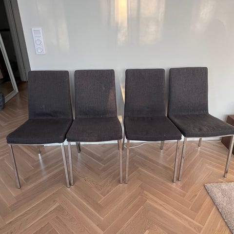 Käytössä hieman harmaantuneet joistakin kohdista ja jotain käytön jälkiä löytyy mutta muuten toimivat ja ehjät tuolit.