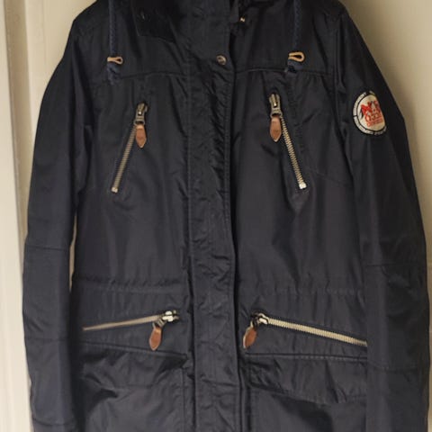 Vähän käytetty Weather Report viileän vaalean beige toppatakki. Hihansuissa ja alhaalla resorit. Kaksisuuntainen vetoketju. Takki pitää tuulta ja vähän vettä ja on lämmin.