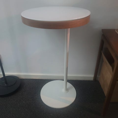 Pöytälevyn voi kääntää sivuun ja pöytälevyn alla pieni säilytystila.