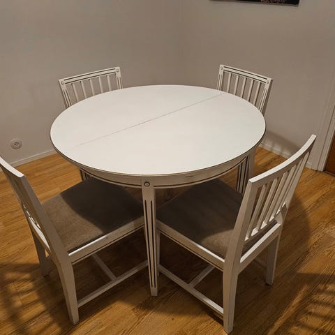 Olen täältä torilta hankkinut ruokailuryhmän ja nyt olisi myynnissä muuton jäljiltä pöytä ja 4 tuolia.