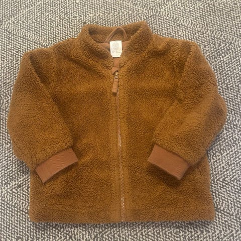 Kulingin beige/ruskea teddytakki jossa taskut. Koko 86. Siisti kunto ulospäin, sisävuoressa vähän nyppyjä.