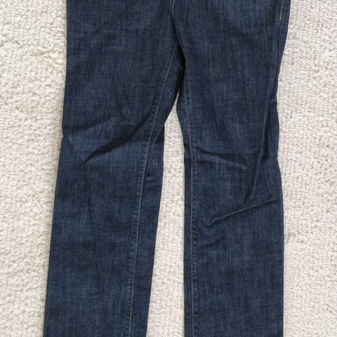 Käyttämättömät farkut. Lahkeet lyhennetty ompelijalla.