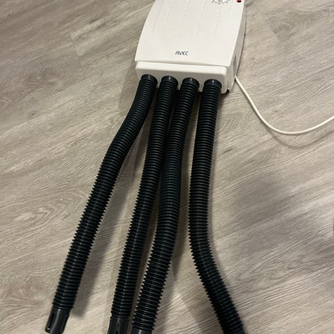 Myydään varastossa ollut kenkäkuivuri. On pölyinen, mutta toimii. Johdossa hieman maalia ja letkuissa pölyä. Vain nouto Keravalta.