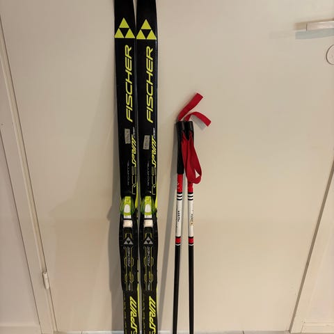 Fischer RCS Sprint sukset, monot ja Swix sauvat. Sukset 120cm, sauvat n. 91cm, monot kokoa 31. NNN siteet.