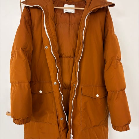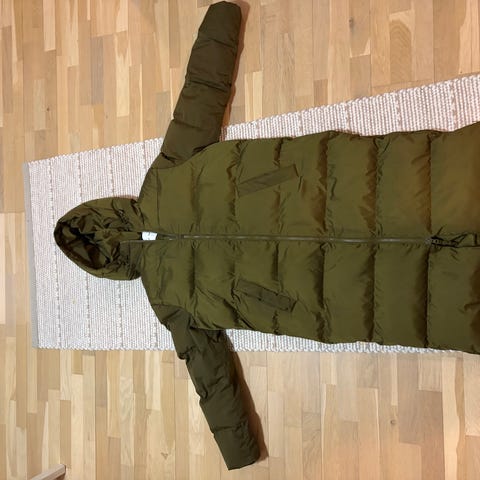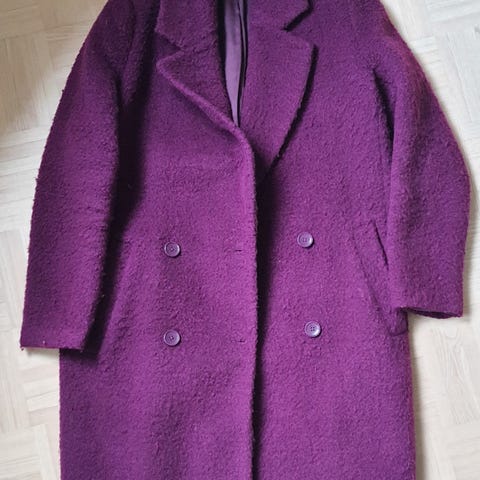 Hyvin vähälle käytölle jäänyt takki, väri vaalea minttu. Takki on muuten ehjä, mutta toisen taskun vuorissa on reikä (kts. kuva).