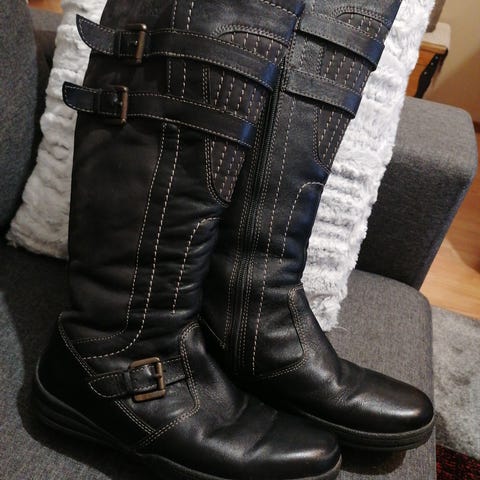 Parin kerran käytetyt ihanat pitkä vartiset saapikkaat leveämmällä lestillä. Crip pohjan ominaisuudella et kaadu liukkaalla kelillä näillä. Mokka osuus sääressä joustaa jonkinverran.