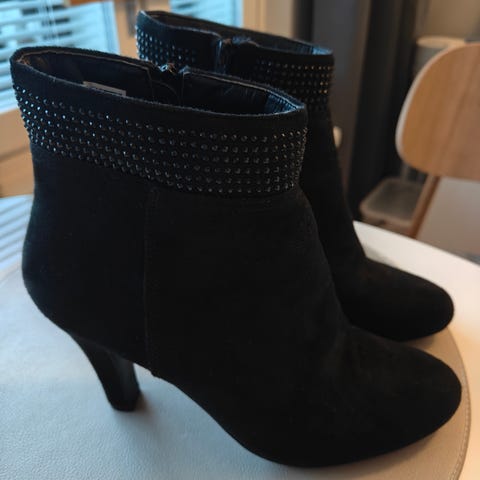 Mustat tekonahkaiset nilkkurit koossa 40. Käytönjälkiä löytyy, kuvissa näkyy.