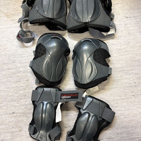 Sisältää Kyynär- ranne- ja polvisuojukset, rannesuojissa pientä käytönjälkeä.