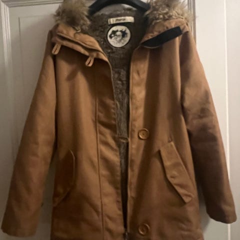 Makian ja Pelagon yhteistakki. Malli on Makian Raglan -takki, selässä Pelagon iso logo.