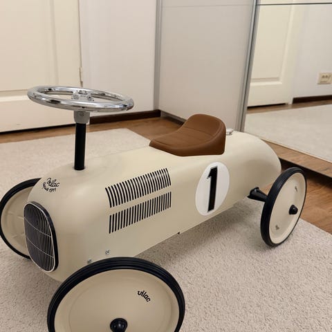 Vilac potkuauto väri cream. Pieniä kulumia maaleissa ja niistä kuvat lähempää. Yleisilme oikein siisti. Hp. 35e