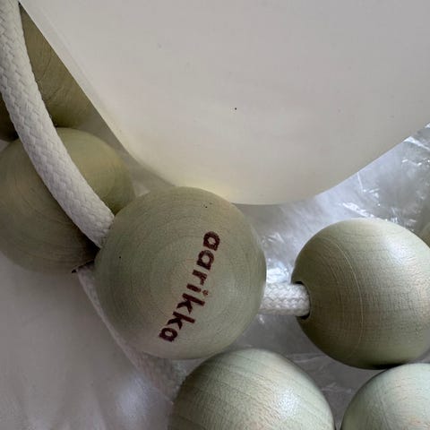 Johdon pituus 3 m, valaisimessa on 30 kpl läpikuultavaksi sävytettyjä puuhelmiä n. 1 m, lampun kanta E27.