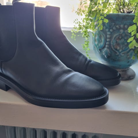 Massimo Dutti mustat nahkanilkkurit koossa 38. Nilkkapituiset saappaat, joissa on matala korko. Käytetty, mutta siistissä kunnossa. Vastaavat kokoaan.