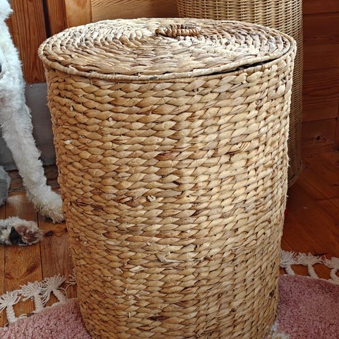 Tukeva ja kestävä pyykkikori, käytetty lähinnä jouluna lahjakorina.