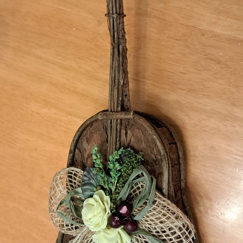 Viulun takana reiät seinäkiinnitystä varten. Haettavissa Ylöjärven Metsäkylästä.