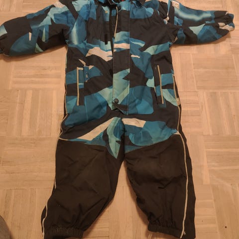 Hyvässä kunnossa seuraavalle. Muutamassa kohdassa kulumaa, näkyy kuvissa. Jalkalenksut ehjät ja siistit. Peppu ja polvet siistit.