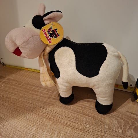 lasten lelu pehmolelu lehmä, mustavalkoinen väri, pehmeä materiaali. Sopii lasten leikkeihin ja lemmikkileluna käytettäväksi.