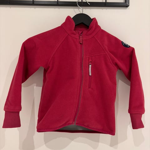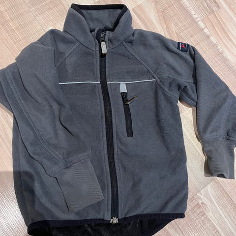 Uutena ostettu ja yhden lapsen käyttämä popin windfleece koossa 98. Ainoat moitteet tummumat hihoissa, näistä kuvat.