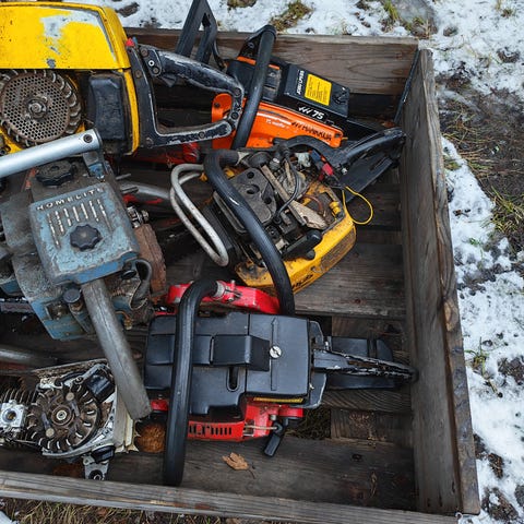 Vanhoja moottorisahoja. Pitkään seisseet. Kaikissa moottori pyörii, muuten ei kunnosta tietoa. Suht täydellisiä yhdestä homelitesta uupuu ketju ja laippa ja isommasta jobusta tulpan hattu.