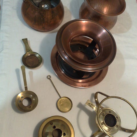Erittäin hyvä kuntoinen ja tyylikäs Fondue -setti. Pata keraaminen. Kuusi haarukkaa.