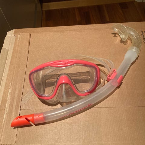 Lasten snorklaus/uimasetti, yhden lomareissun ollut käytössä 4-vuotiaalla.