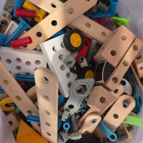 Laadukas Brio puinen kaivinkone rakennussarja, joka sisältää 121 osaa. Osista voi koota kaksi erilaista työkonetta. Osista puuttuu katolle laitettava "työvalon" oranssi suoja. Huomioitu hinnassa. Hyvä kuntoinen.