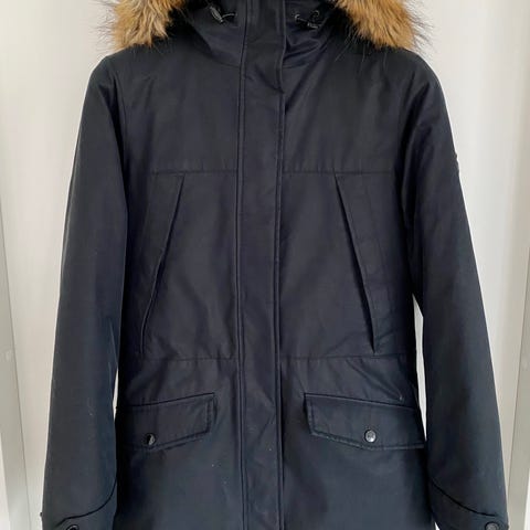 Myyn uudenveroisen parkatakin. Koko S, reilu mitoitus. Vyötärö säädettävissä.