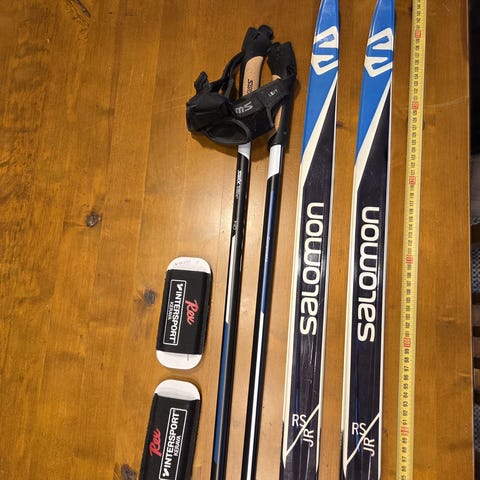 Yhden talven hiihdot hiihdetty, joten todella hyvässä kunnossa olevat luistelusukset seuraavalle juniorille. Naarmuttomat pohjat.