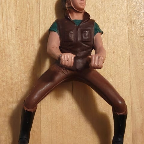 Ratsastaja, jonka merkki on Papo, mutta menee Schleich hevosten/muiten tuotteiden kanssa hyvin (on realistisen kokoinen ja sopii käyttö tarkotukseensa). Vähän käytetty, mutta ehjä!