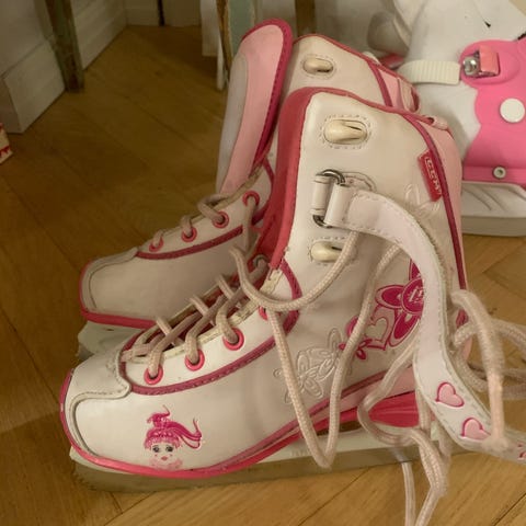 Lasten luistimet koko 33 valkoinen väri. Käytetyt luistimet, joissa näkyy käytön jälkiä. Pahimmat viat ovat pintaan toisesta luistimesta tulleet viillot. Toimivat kyllä luistimina vielä ihan hyvin. Nouto Jätkäsaaresta ja maksu mielellään Mobilepay