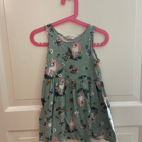 H&M harmaa puuvillainen mekko tytöille, koko 98-104. Mekossa on yksisarvinen ja sateenkaari -kuviointi, materiaali on pääosin puuvillaa. Sopii arkipukeutumiseen ja leikkeihin.