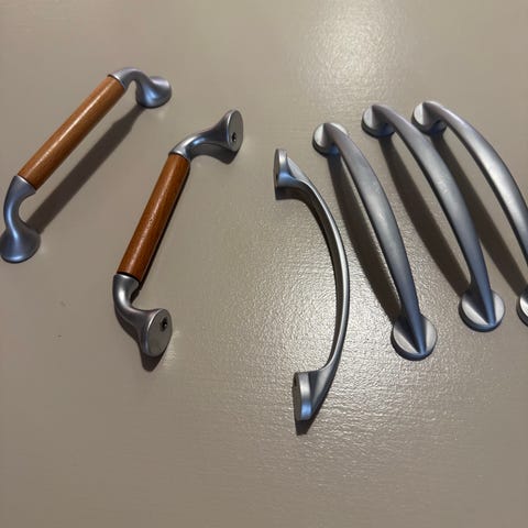 Myydään yhteensä 23kpl kultaisia kaapinvetimiä. Osin jo kultaus haalistunut. Ruuviväli 10cm.
