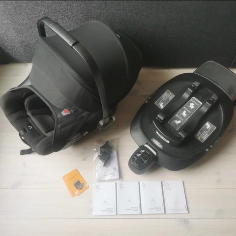 Myydään erittäin siistissä kunnossa oleva Bugaboon Turtle Air by Nuna -turvakaukalo sävyssä Stormy Blue sekä ja telakka.