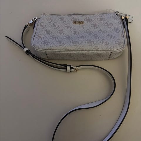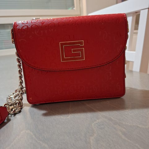 GUESS tekonahkainen laukku mustassa värissä. Valmistettu kiiltonahasta. Sopii hyvin juhliin pikkulaukuksi.