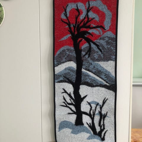 Kaunis vihreän sävyinen raanu. Mitat n. 41 cm x 67 cm.